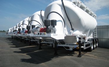 1. Полуприцепы-цистерны цементовозы, оснащенные алюминиевой цистерной с подъемным механизмом и BPW осями.